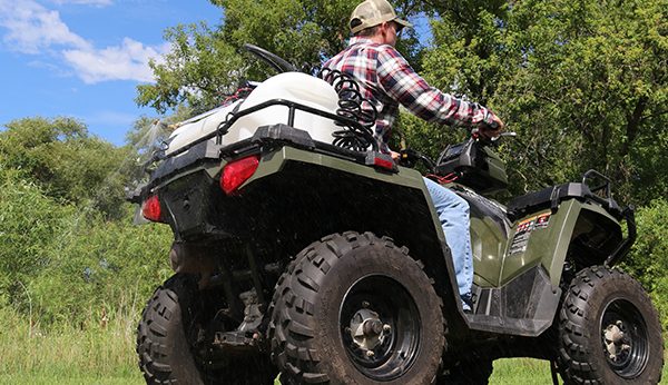 Boomless sprayers are typically easier to maneuver, as they offer a more compact setup than that of a boom sprayer. Boomless sprayers are typically used for spraying ditches, fence lines, rough terrain, around objects that require sharper turns (think poles and trees), as well as woods and trails.