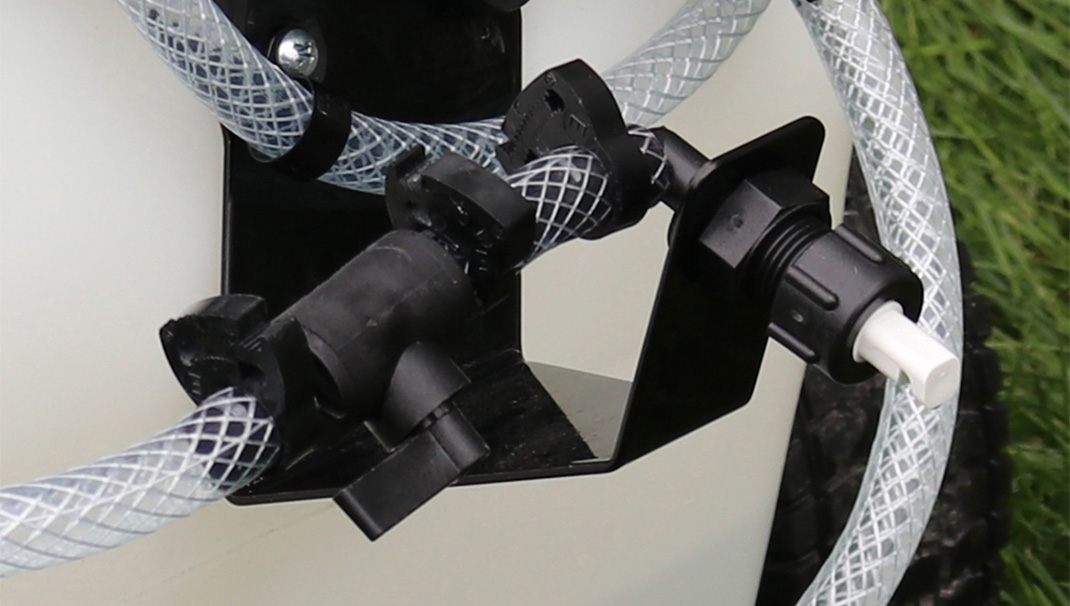 Broadcast Spraying: This tow-behind trailer sprayer features a single deflector broadcast nozzle that can reach up to an 84” spray swath. With a compact setup, easily prevent damage from oncoming obstacles such as trees or easily store sprayer without taking up extra room. Includes shut-off valve next to deflector nozzle that allows you to control flow to nozzle.