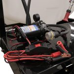 Sprayer Features: Get hitched with this one of a kind, heavy-duty 200 Gallon Premium Trailer sprayer. Featuring a top of the line pumping system that includes a robust Everflo 5.5 GPM 12V on-demand diaphragm pump, pressure gauge, adjustable pressure regulator and a shut-off valve that controls water flow to spray boom. In seconds, easily hitch to a UTV or Sub-Compact Tractor with the included 2” ball hitch. Never fear for safety as this trailer features an all-steel roll cage and independent suspension axle that prevents unnecessary sloshing in tank. Keep your trailer sprayer stationary with the included Valley Industries trailer jack that swings up and away for travel. Other features include a 12” vented screw-on fill lid for easy filling, 20.5” heavy-duty tires, 15’ of rubber hose with organizing rack and sump for easy draining after spraying. Can be converted to forkliftable skid with 10 bolt removal of axle and hitch.