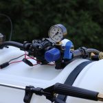 Sprayer Features: Cover more ground with this 25 Gallon ATV Broadcast and Spot Sprayer. Featuring a top of the line pumping system that includes a robust Everflo 2.2 GPM 12V on-demand diaphragm pump, pressure gauge, adjustable pressure regulator and a shut-off valve that controls water flow to spray boom. As terrain and spraying applications change, conveniently adjust spray boom height with the all-steel boom bracket uprights. Easily move the sprayer on/off a vehicle with quick grip handles built into the UV resistant tank. Includes 15 feet of hose to spray gun that gives more flexibility for those hard to reach areas. After application use, drain remaining water and chemical with the accessible molded in drain port.