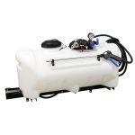 Sprayer Features: Cover more ground with this 25 Gallon Deluxe ATV Broadcast and Spot Sprayer. Featuring a top of the line pumping system that includes a robust Everflo 2.2 GPM 12V on-demand diaphragm pump, pressure gauge, adjustable pressure regulator and a shut-off valve that controls water flow to spray boom. Keep debris and chemical clumps from entering your pump with the easy to maintain quick attach inline strainer. As terrain and spraying applications change, conveniently adjust spray boom height with the all-steel boom bracket uprights. Easily move the sprayer on/off a vehicle with quick grip handles built into the UV resistant tank. Includes 15 feet of hose to spray gun that gives more flexibility for those hard to reach areas. After application use, drain remaining water and chemical with the accessible molded in drain port.