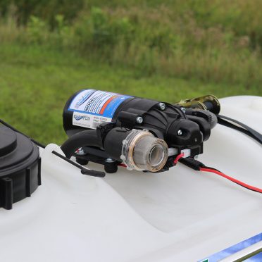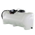 Sprayer Features: Be a sharp shooter with this 25 Gallon Deluxe Spot Sprayer. Featuring a robust Everflo 2.2 GPM 12V on-demand diaphragm pump. Keep debris and chemical clumps from entering your pump with the easy to maintain quick attach inline strainer. Keep your hose organized with the hook and loop hose strap that prevents any unwanted damage or dragging. Easily move the sprayer on/off a vehicle with quick grip handles built into the UV resistant tank. Includes 15 feet of hose to spray gun that gives more flexibility for those hard to reach areas. After application use, drain remaining water and chemical with the accessible molded in drain port. Comes standard with 12v wire harness that features an alligator clamp connection. Approved for use with Round-Up® and other agricultural brand herbicides and insecticides. Backed by a two-year warranty on pump & components. Can be used with UTVs and other means of transportation with some modifications.