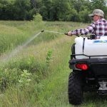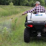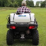 Sprayer Features: Be a sharp shooter with this 25 Gallon Spot Sprayer. Featuring a robust Everflo 2.2 GPM 12V on-demand diaphragm pump. Easily move the sprayer on/off a vehicle with quick grip handles built into the UV resistant tank. Includes 15 feet of hose to spray gun that gives more flexibility for those hard to reach areas. After application use, drain remaining water and chemical with the accessible molded in drain port. Comes standard with 12v wire harness that features an alligator clamp connection. Approved for use with Round-Up® and other agricultural brand herbicides and insecticides. Backed by a two-year warranty on pump & components. Can be used with UTVs and other means of transportation with some modifications.