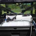 Sprayer Features: This 50 gallon premium UTV sprayer is loaded with features that make spraying a breeze. Featuring a hinged over the gate EZ-lock boom mount that allows for quick boom removal or easy access to UTV (side-by-side) tailgate. Make pressure adjustments on the fly with the accessible driver side bay controls that include a robust Everflo 3.0 GPM diaphragm pump, pressure regulator, boom shut-off valve and pressure gauge. With a compact tank design, gain the visibility you need to monitor your spraying. Make filling swift with the wide mouthed 8” fill lid. Keep debris and chemical clumps from entering your pump with the easy to maintain QA inline strainer. Drain your sprayer completely with the angled base drain port. Finally, on-tank steel handles for effortless on/off lifting.