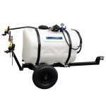 Sprayer Features: Conquer more turf with the Master Manufacturing 60 Gallon Deluxe Trailer Sprayer. This sprayer features a top of the line pumping system, including a robust Everflo 3.0 GPM 12V diaphragm pump, pressure gauge, adjustable pressure regulator and a shut-off valve to control boom flow. Keep debris and chemical clumps from entering your pump with the easy to maintain, quick-attach clear bowl inline strainer. Prevent the 15-feet of spray gun hose from dragging with the included hook and loop hose organizing strap. Rugged terrain doesn’t stand a chance with the 16″ heavy-duty tires with 1″ axle. Comes standard with 12v wire harness that features on/off switch and alligator clamp connection. UV resistant tank.